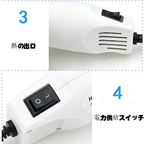 - 加熱ツール、パテの乾燥、塗装やシールの剥がし作業、熱収縮チューブの加工、シュリンクフィルムの収縮。
