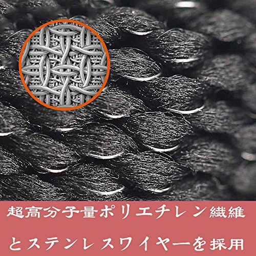 - 高強度ポリエチレン繊維とステンレスワイヤーの組み合わせにより。刃物によるカット耐性を備えた手袋です。