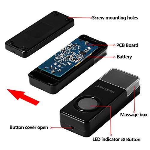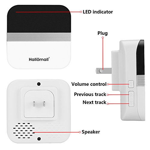 - 3..簡単設置:ドアチャイム受信機を電源コンセントに接続して、電池切れなど心配しないで取り付け方もとても簡単です。ドアベル送信機は、ネジでドアフレームに固定されます、或いは、両面接着テープでドアに付着させることができます。