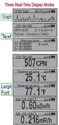 デバイスが検出された放射線のレベルのための音と視覚信号に建てられたが付属しています。これは、継続的に放射線を監視し、内部メモリにデータを各秒を保存することができます。