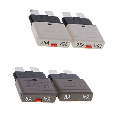 GRALARA 4個入り 28V 自動車 トラック ボート ミニブレードヒューズ 手動 回路ブレーカ 全8サイズ - 8A + 25A