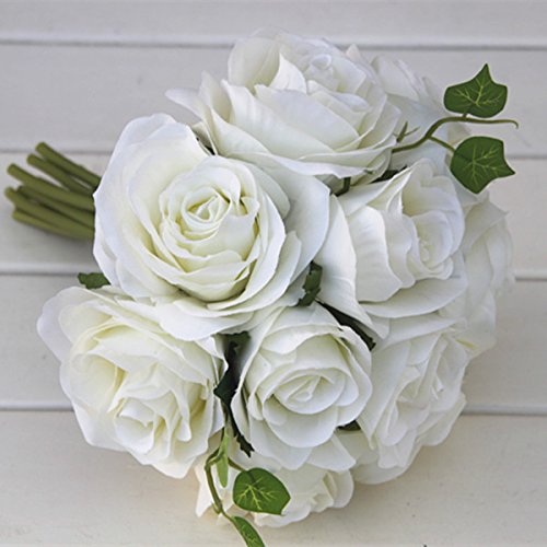 【枯れないお花】人工造花 白薔薇(7本)とアジサイ(3本) 家庭/結婚式用装飾 花嫁花束