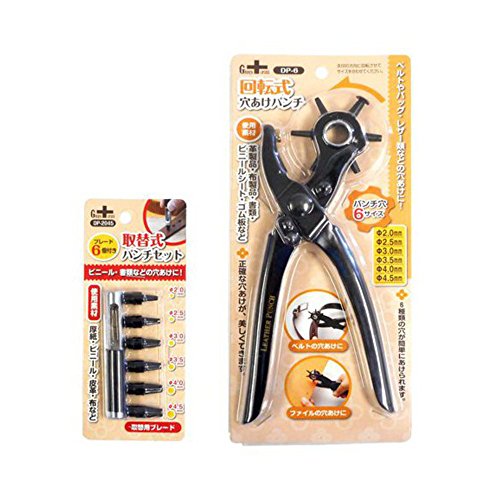 - 使用素材/回転式穴あけパンチ:皮革製品・布製品・書類・ビニールシート・ゴム板等 取替式パンチセットブレード付:厚紙・ビニール・皮革・布等