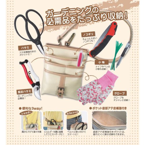 ●ガーデニングの必需品をたっぷり収納。●お庭のお手入れをおしゃれにきめます。●小物等の収納もできます。●ショルダー・ウエストポーチ・ベルト(カラビナ付き)に取り付けられる便利な3WAY。●ポケット底部アテ皮補強付き。●製品サイズ/縦:230mm横:155mm高さ:30mm●製品重量:285g●パッケージサイズ/縦:50mm横:155mm高さ:230mm●パッケージ重量:290g●生産国:中国●材質:人口皮革●サイズ:W155×H230mm●重量:298g