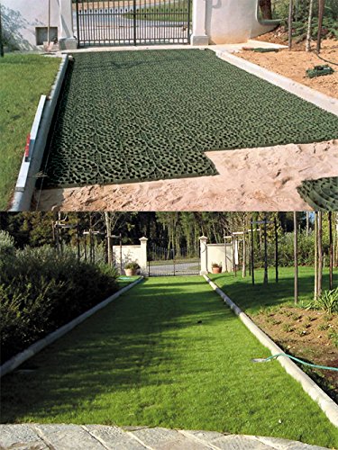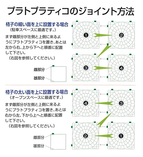 - 使用方法:表・裏、両面使用(リバーシブル)が可能です。 車のタイヤが直接乗るスペースには構造リブの細い表部分を上に、歩行スペースには構造リブの幅の広い裏面の使用をお勧めします。 また併用する芝の種類は根が真直ぐ下に伸びる洋芝をご使用ください。(高麗芝などの和芝は根が横に成長していくライナー茎ですので不向きです。)