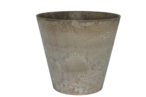 今、ヨーロッパで人気のニューアイテムです。樹脂に天然石の粉末を混ぜ、成形する事で、ナチュラル感と質感を持たせました。中底に小さな穴を多数空けることにより底面給水を可能にし、また底部の特殊構造により底栓を抜く事で、水位を自動調整してくれる、画期的な構造です。屋外では底栓を抜いてお使いください。