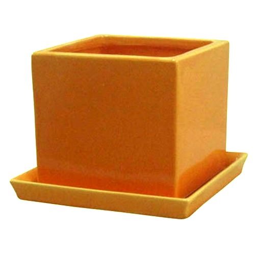 インテリアポット タリーズ キューブ イエロー 12cm 皿付 穴有 / 植木鉢
