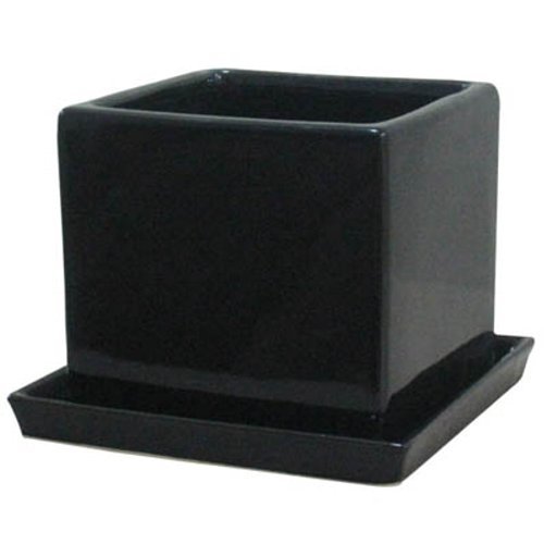 インテリアポット タリーズ キューブ ブラック 14cm 皿付 穴有 / 植木鉢