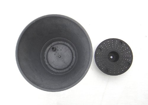 今、ヨーロッパで人気のニューアイテムです。樹脂に天然石の粉末を混ぜ、成形する事で、ナチュラル感と質感を持たせました。中底に小さな穴を多数空けることにより底面給水を可能にし、また底部の特殊構造により底栓を抜く事で、水位を自動調整してくれる、画期的な構造です。屋外では底栓を抜いてお使いください。