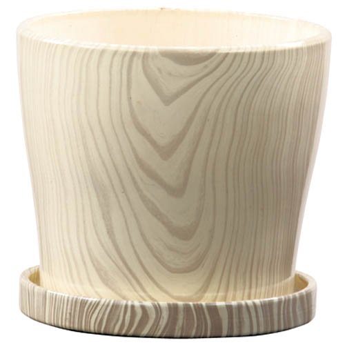 インテリアポット ウッディ ラウンド 23.5cm ホワイト 皿付 /植木鉢