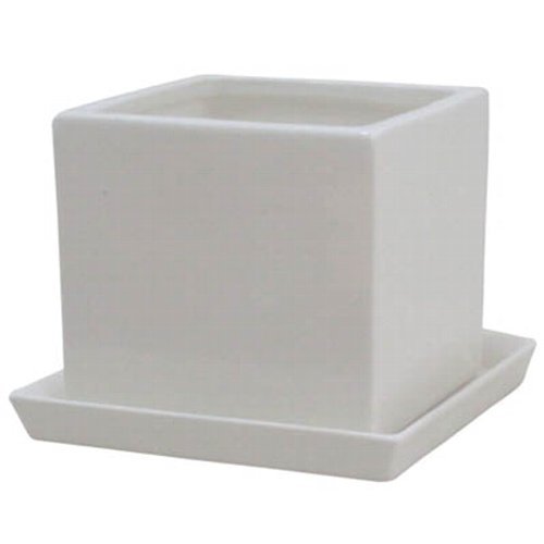 インテリアポット タリーズ キューブ ホワイト 10cm 皿付 (穴有) 4個入り /植木鉢