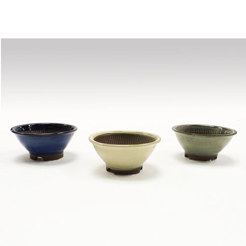 ミニ盆栽鉢 色スリ鉢 3点取合せ 4号 /植木鉢