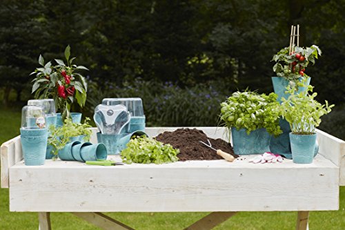 今、ヨーロッパで人気のニューアイテムです。樹脂に天然石の粉末を混ぜ、成形する事で、ナチュラル感と質感を持たせました。中底に小さな穴を多数空けることにより底面給水を可能にし、また底部の特殊構造により底栓を抜く事で、水位を自動調整してくれる、画期的な構造です。屋外では底栓を抜いてお使いください。