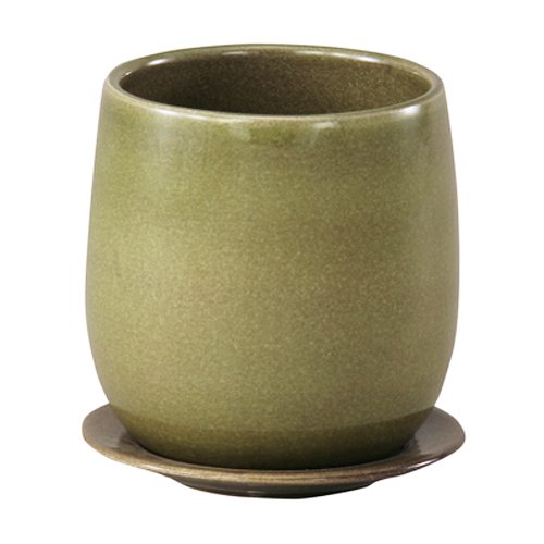 インテリアポット 陶器製植木鉢 カーム ボール グリーン 17cm 皿付 2個入り