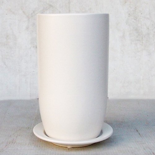 インテリアポット 陶器製植木鉢 オスト トールエッグ マットホワイト15cm 皿付