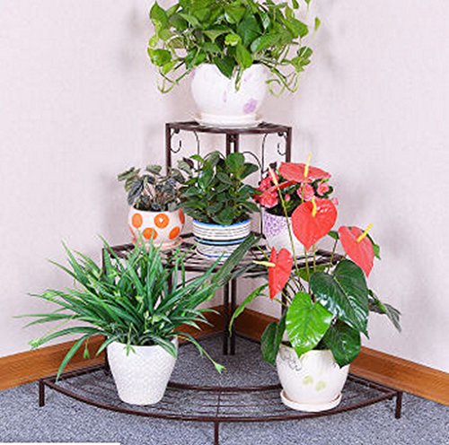 アイアンフロアタイプフラワーラックマルチレイヤーフラワーシェルフラダーコーナーテラスフードシェルフの種類 ( 色 : #3 )