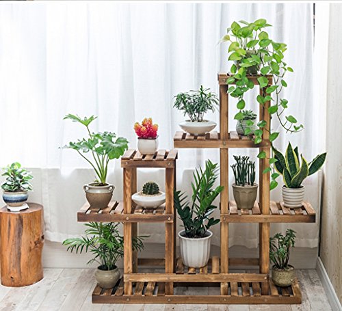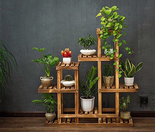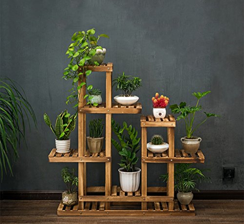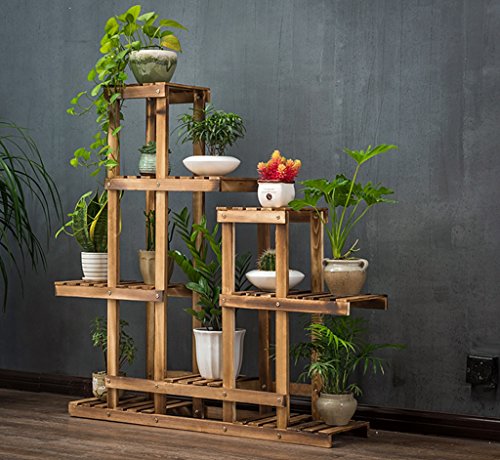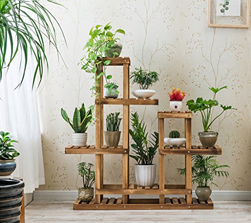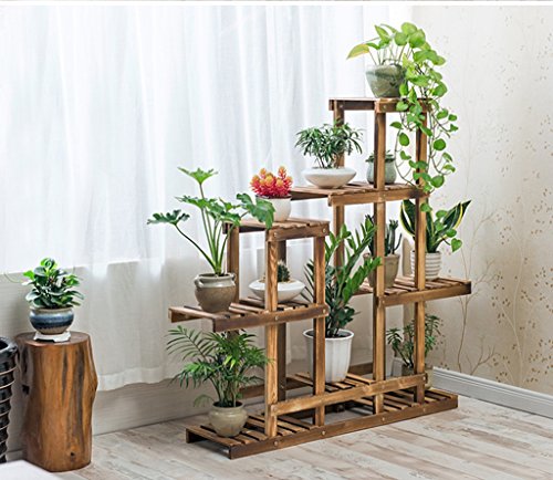 フラワーラック、複数の層ソリッドウッド屋内バルコニーリビングルームフラワーシェルフフラワーポットラックカーボンベーキングカラー101 * 25 * 110CM