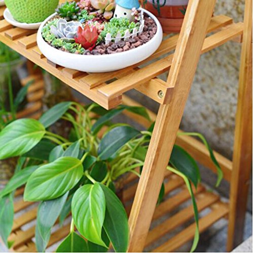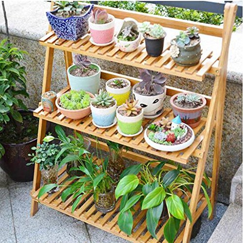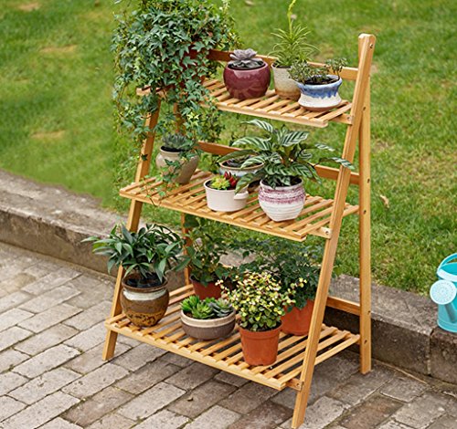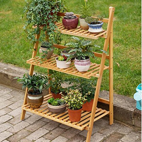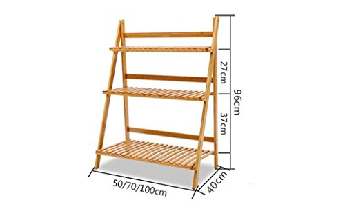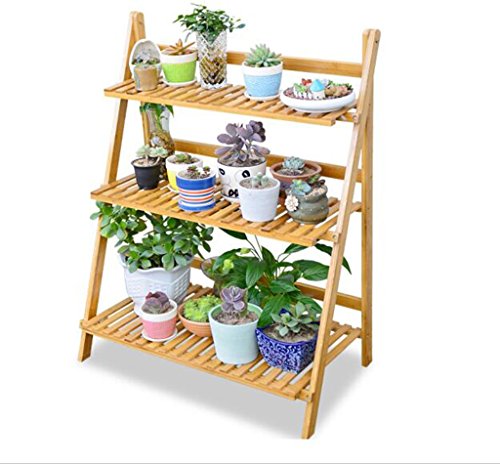フラワーラック、バンブーソリッドウッド3レイヤーグリーンラディッシュランディングバルコニーフォールドシェルフフラワーポットラック ( 色 : ウッドカラー , サイズ さいず : 70センチメートル )