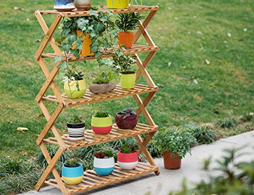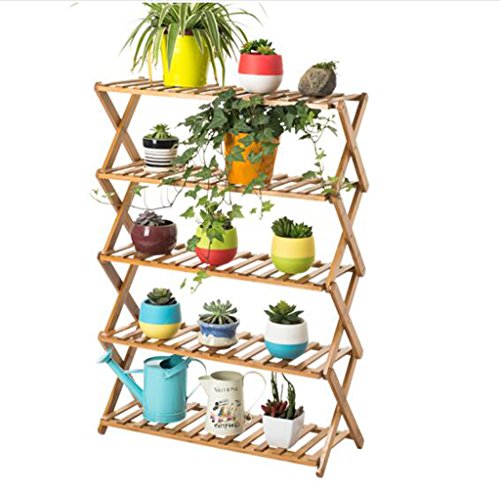 フラワーラック、バンブーソリッドウッドランディングバルコニーフォールドフラワーポットラックフラワーシェルフシェルフ5層オリジナルバンブーカーボンカラー ( サイズ さいず : 70センチメートル )