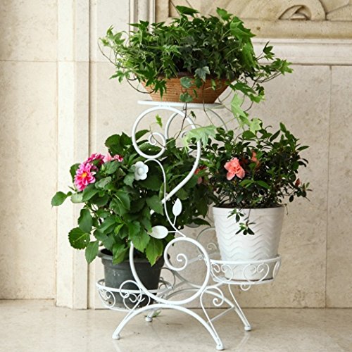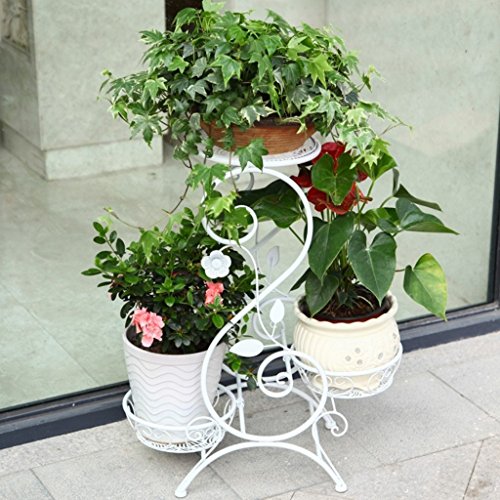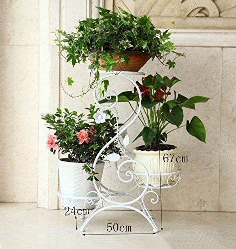 フラワーラック、鉄ヨーロッパスタイルの農村無料のアセンブリ複数の層屋内バルコニーリビングルームツイスト形状のポットシェルフ50 * 24 * 67CM ( 色 : 白 )