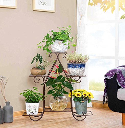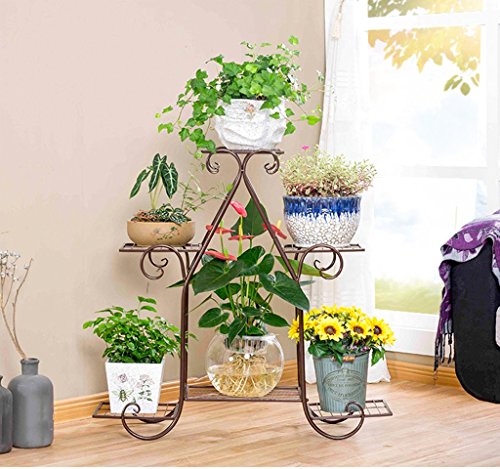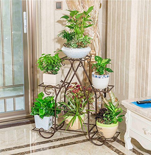 フラワーラック、シンプルアイアン6層リビングルームバルコニーフロアスタイルフラワーポットラックフラワーシェルフサスペンションフラワースタンド ( 色 : ブロンズ , サイズ さいず : 77*21*72cm )