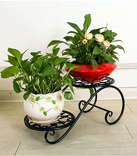 フラワーラック、ヨーロッパスタイルのアイロン2層バルコニーリビングルーム屋内着陸フラワーポットラックフラワーシェルフ ( 色 : ブラック )
