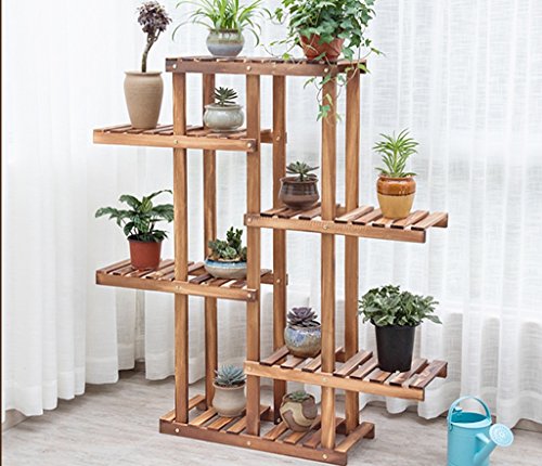 フラワーラック、ソリッドウッド複数のレイヤーバルコニーリビングルーム屋内ランディング盆栽フラワーシェルフバルコニーリビングルーム屋内カーボンベーキングカラー61 * 25 * 125CM