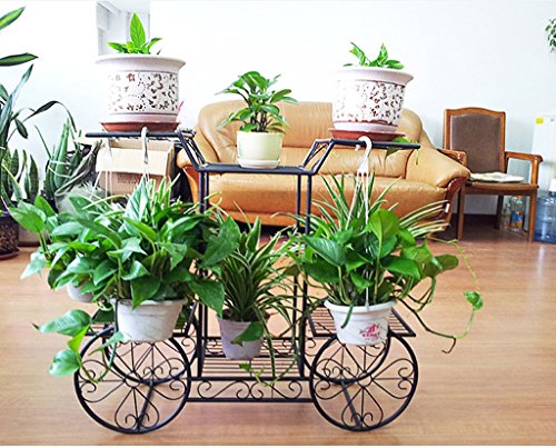 フラワーラック、鉄ヨーロッパスタイルの屋内バルコニーフロアスタイル自転車タイプ6ポットフラワーシェルフフラワーポットラック79 * 25 * 67CM ( 色 : ブラック )