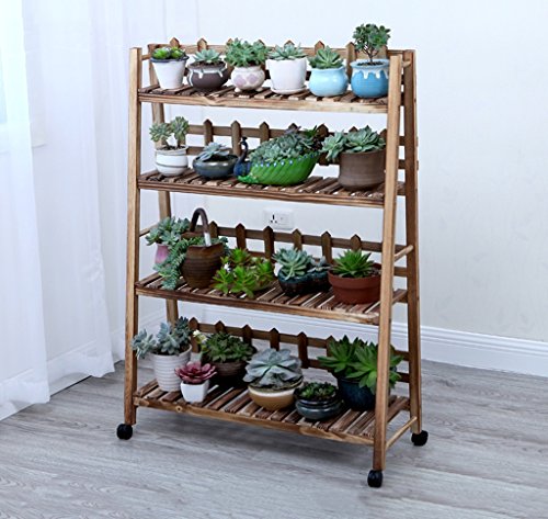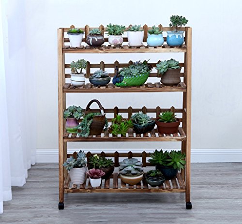 フラワーラック、ソリッドウッドのバルコニーリビングルーム地上に倒れるモバイルシェルフフラワーシェルフマルチフェンス4階炭化されたプラスのタイヤ ( サイズ さいず : 88*31*121cm )