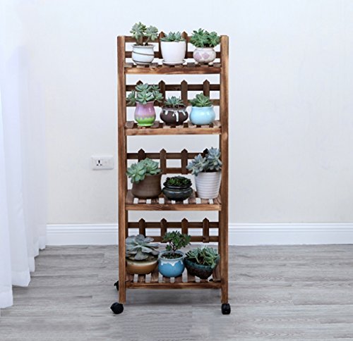 フラワーラック、ソリッドウッドのバルコニーリビングルーム地上に落ちるモバイルシェルフフラワーシェルフマルチフェンス3層カーボンカラープラスタイヤ ( サイズ さいず : 50*31*98cm )
