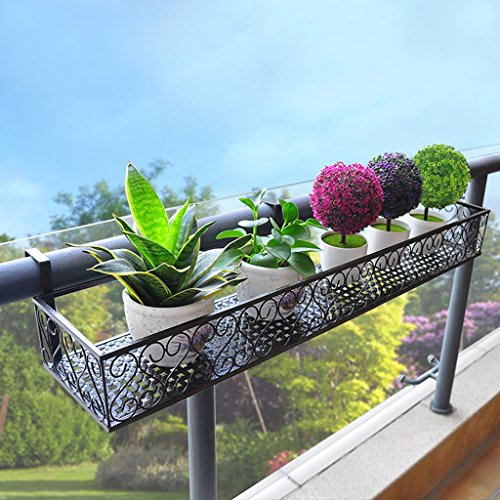 フラワーラック、アイアンレールの懸架フラワーシェルフフェンス多機能バルコニーフラワーポットラックブラック50×20×12cmロッド幅4cm ( サイズ さいず : 60*20*12cm )