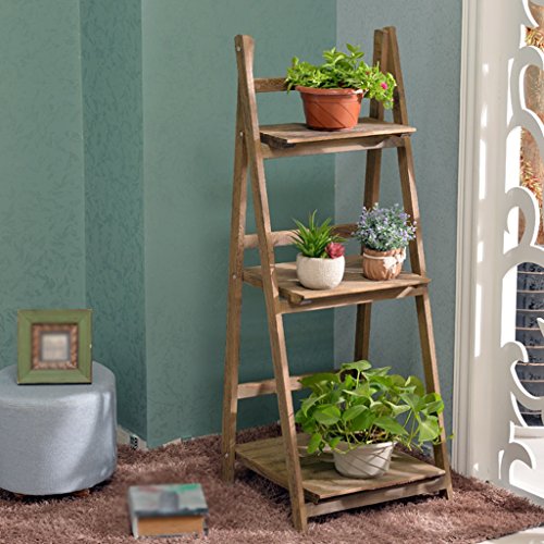 フラワーラック、ソリッドウッドヨーロピアンスタイルシンプル3層バルコニーコーヒーショップインテリアリーフ棚シェルフブック41×34×106cm ( 色 : Carbon baking color )