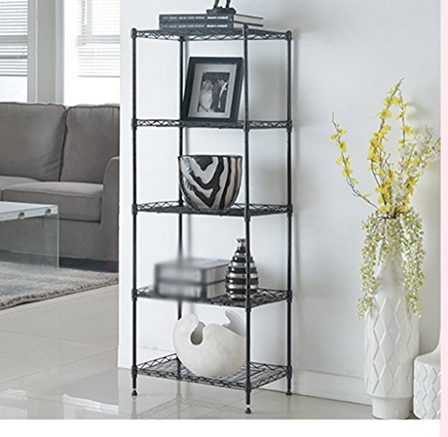 GRJH® キッチン5棚メタル多機能バスルームストレージラックストレージラックバルコニーフラワーラックシェルフブライトシルバー 防水性と耐久性 ( 色 : ブラック )