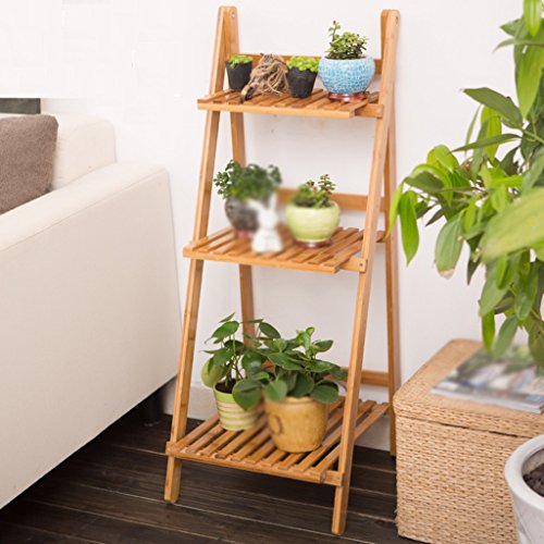 GRJH® 多肉植物フラワーラックソリッドウッドフォールドラダーフラワーラックバンブーランディングマルチレイヤーバルコニーフラワーラック無料設置 防水性と耐久性