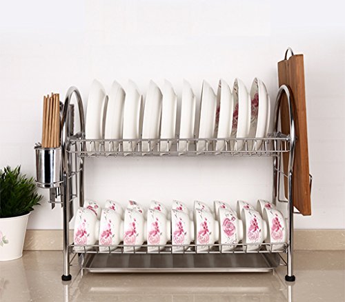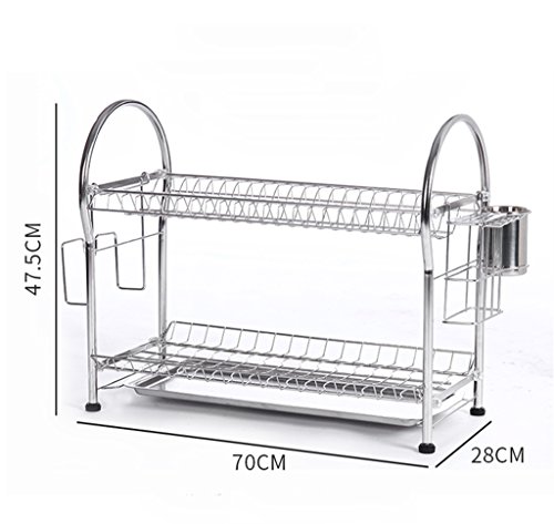 GRJH® 47.5 * 28 * 70センチメートルキッチンステンレススチールは、食器ラックを掛けることができますドレインシェルフ食器棚タレットダブルレイヤーストレージラック箸チューブ排水バスケット 防水性と耐久性