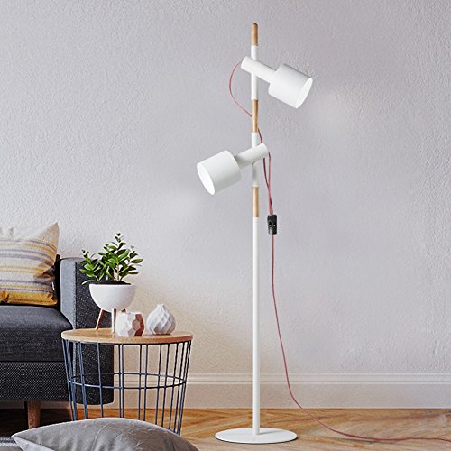 木製のフロアランプ、現代のシンプルリビングルームの寝室スタンディングライトソファE27 * 1淡色にすることができます白いワイヤスイッチハイ1450ミリメートル
