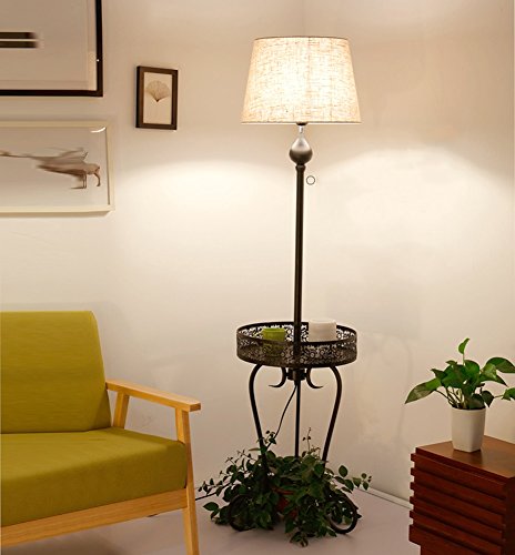 アイロンフロアランプ、ベッドルーム垂直暖房ベッドサイドランプリビングルームLED照明3色の明るさを変えるNordic Modern study E27 * 1高162cmフットスイッチ ( 色 : リネン色 )