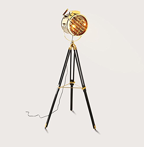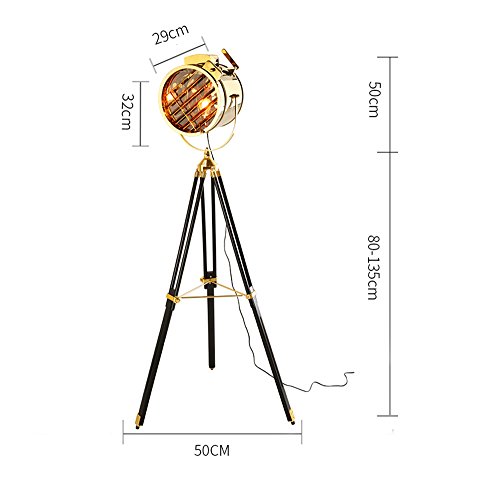 レトロ工業用フロアランプ、合金居間ベッドルームステージスタジオ検索ライト北欧写真ライト三脚E27 * 1ライトポールの高さ80-135cm クリエイティブ (色 : ゴールド)