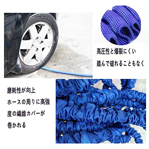 - 耐久性:洗車ホースの周りに改良した高強度のハイシルク繊維カバーが巻かれます。内側に熱と寒さに耐える強化したシリコンチューブを採用し、高圧性と爆裂にくい特性が更に優れて、安全を確保ながら耐磨耗性が向上しています。