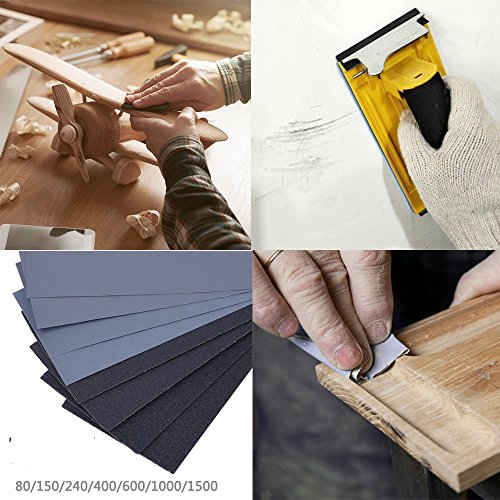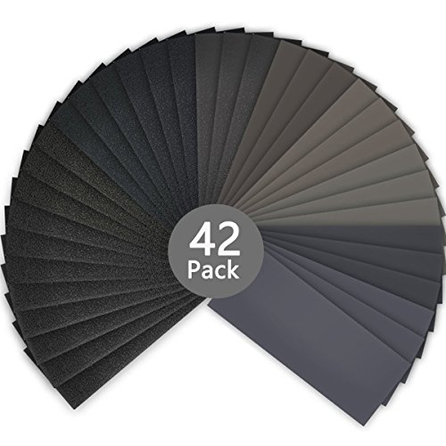 サンドペーパー 42枚入り GUNA 紙ヤスリ セット 耐水ペーパー(#80・#150・#240・#400・#600 ・#1000 ・#1500×各6枚)木工 ペーパー 研磨用