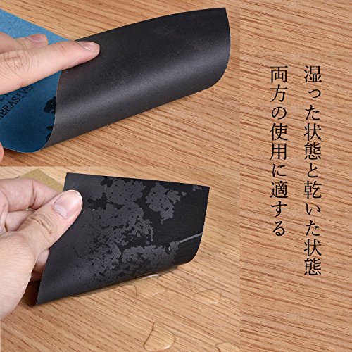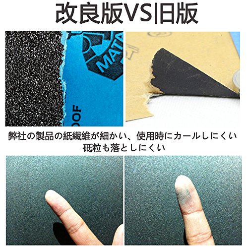 - 耐水研磨紙の紙繊維が細かい、使用時にカールしにくい、砥粒も落としにくい。他の普通のサンドペーパより耐用性が向上しています。