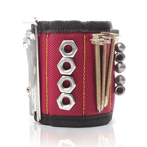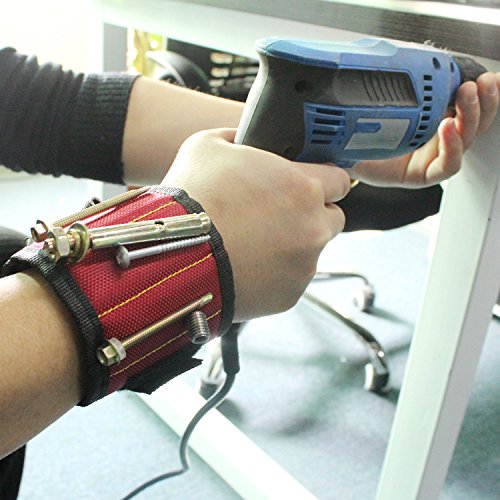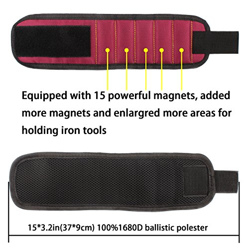 磁気リストバンド アームバンド 15個強力N38ネオジムマグネット付き、ネジ/釘/ドリルビット/小さな工具用、修理 建築 大工作業、DIYのハンディマン,男性,女性ための調節可能なリストバンド (赤)
