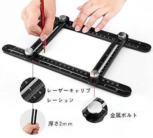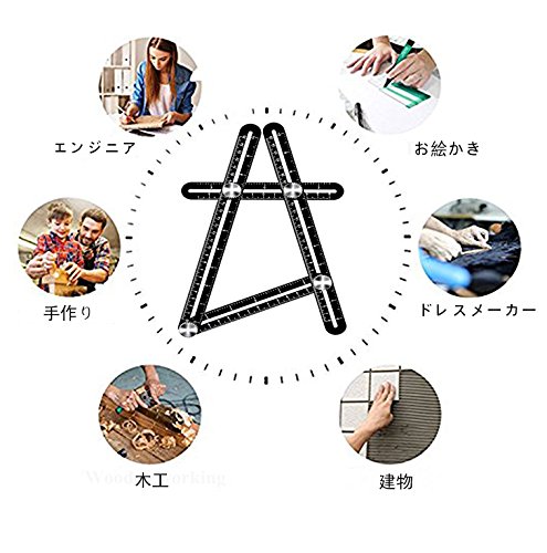 アルミ合金製 多角度テンプレートツール 測定定規 自由スコヤ 折り畳み 直尺 曲尺 分度規 多機能定規 大工道具 DIYツール
