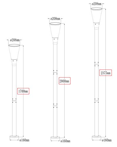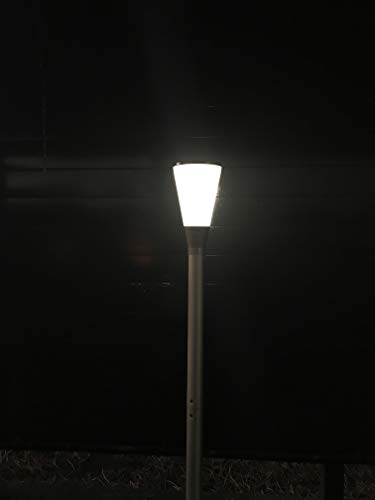 ①自社製・新型ソーラー式 アルミポールライト 高さ:200cmタイプ。高性能ソーラーパネル3.5W、日亜製LED 12 個、軽量アルミポールを一体型に進化した、新型ソーラーポールライト。付属のリモコンで、白色と電球色タイプ2色の調節が可能 ➁昼間にフル充電後、夜間8時間点灯後自動消灯。光センサー付き、暗い時に自動点灯、明るくなっと時自動消灯。③配線・電気工事いらず、軽量アルミポールを付属のねじで接続するだけ、簡単設置。太陽光の下に設置、自動的にライト本体に内蔵の充電池に充電されます。 Li-Fe充電池、3.2V / 4500mAhパック付属④LED:12 個、ホワイト色・電球色、リモコンで色調節可。明るさ:100ルーメン⑤本体サイズ: ボール部 直径20.7×全体高さ200(㎝) 付属品:底座固定用12mm膨張アンカー3セット、リモコン、ネジ、取付け用六角ドライバー