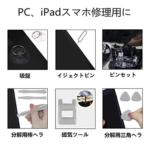 - 【専用配属品】セット配属品:15種類以上の98本ビット+磁気ドライバー+静電気防止ピンセット+スクリーン吸盤+分解棒/▲ヘラ+延長シャフト+ドリル用ホルダー+SIMイジェクト+磁気ツール