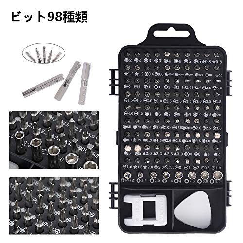 TREKOO 精密ドライバーセット ドライバーキット 110in1 98種ビット 特殊ドライバー 改良型 多機能ツール マグネット ねじ回し トルクス U型 Y型 三角 分解ヘラ プラス マイナス 差替式 DIY iPhone パソコン修理 メガネ 腕時計 カメラ プロ用 (ブラックセット)