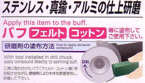 ※バフ、フェルトディスクなどにつけて使う固形タイプの研磨剤です(摩擦熱で溶けます)
