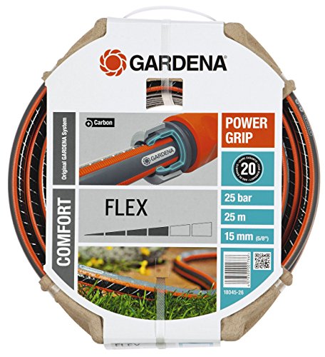 Gardena 5/8'' comfort FLEX hose with power grip and double helix structure comes with original GARDENA system fittings.