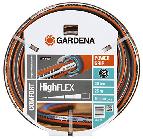 Gardena 3/4'' comfort HighFLEX hose with power grip design, comes with original GARDENA system fittings.