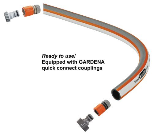 Gardena 5/8" classic hose with double helix structure also comes with original GARDENA system fittings.